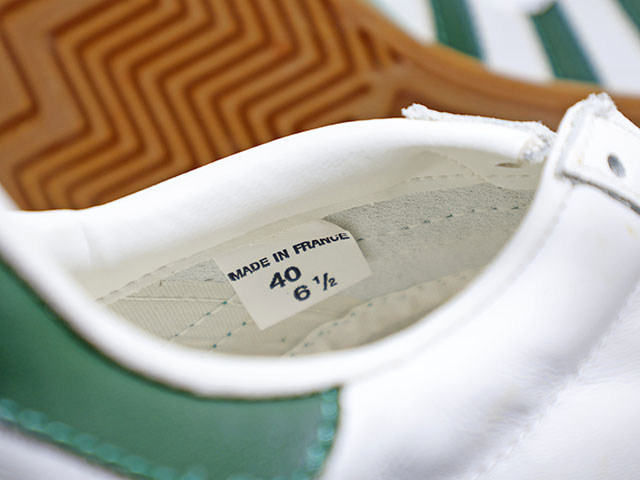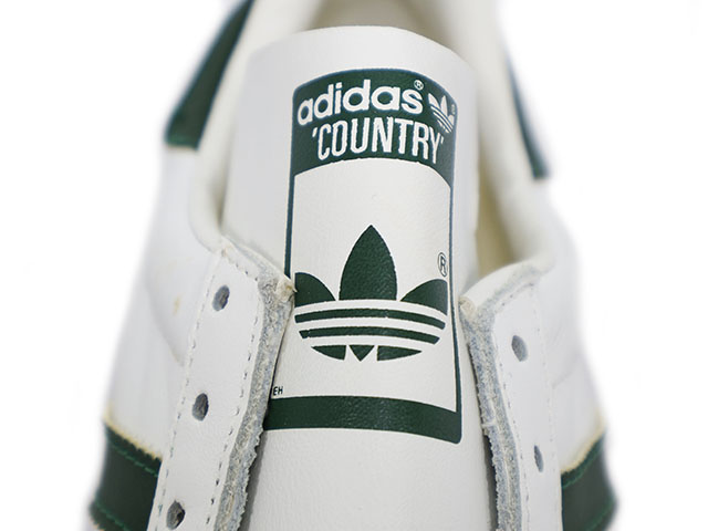 1973年にクロスカントリー用のランニングシューズとして発売された「COUNTRY」。2層になったミッドソールとヘリンボーンパターンのゴムアウトソールの3層ソール構造が特徴で「STAN SMITH」、「SUPERSTAR」と並びADIDASを代表するモデルです。こちらはシュータンにはMADE IN FRANCEの表記はなく、アッパーサイドには二本のステッチ、インソールは無地の1980年代に入った「COUNTRY」最終タイプ。
