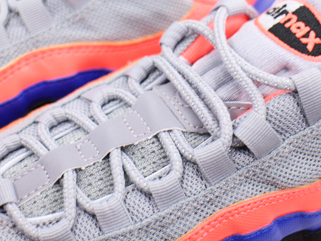 人体にインスピレーションを得て"セルジオ・ロザーノ"がデザインした「AIR MAX 95」。オリジナルは1995年に発売されました。シューレースの構造はあばら骨をイメージし、アウトソールは背骨を。メッシュを使ったアッパーは筋繊維をイメージしてデザインされています。デザインばかりが注目されますが、前足部にビジブルAIRクッショニングを初めて備えたシューズで、そのシステムはバスケットシューズにも代用されるなどまさにエポックメーキングな1足です。今作は既存のモデルと異なった素材を採用したESSENTIAL仕様。天然皮革のオーバーレイにブラック、ブルー、マンゴーの合成皮革をあしらった1足。